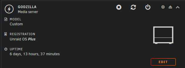 My first ever home server I named, Godzilla. Using Unraid OS, so far pretty great OS. Their docker store and templates are excellent.