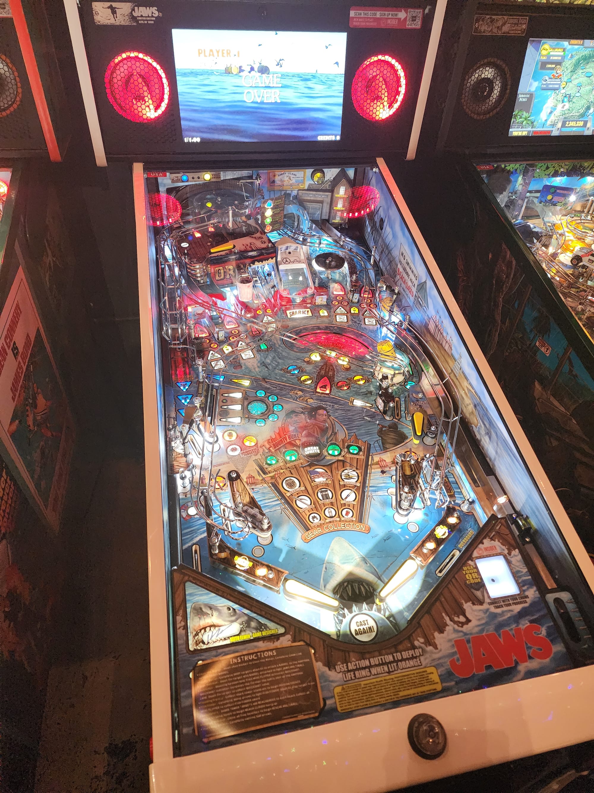 I have newfound respect for people that play pinball machines they ain't easy. I also didn't know till my friends and I looked it up but when pressing the button you actually have to smack the machine around a bit to escape having the ball fall through the middle.
